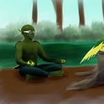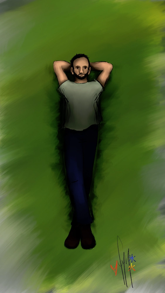 The lighting for this one is a bit weird because he was meant to be stargazing but this method of shading is not conducive to night lighting (can be done but it’s supposed to be a QUICK method of shading and doing that much deep shadow is the opposite of quick) so I changed it in a hurry to late evening cloud gazing.