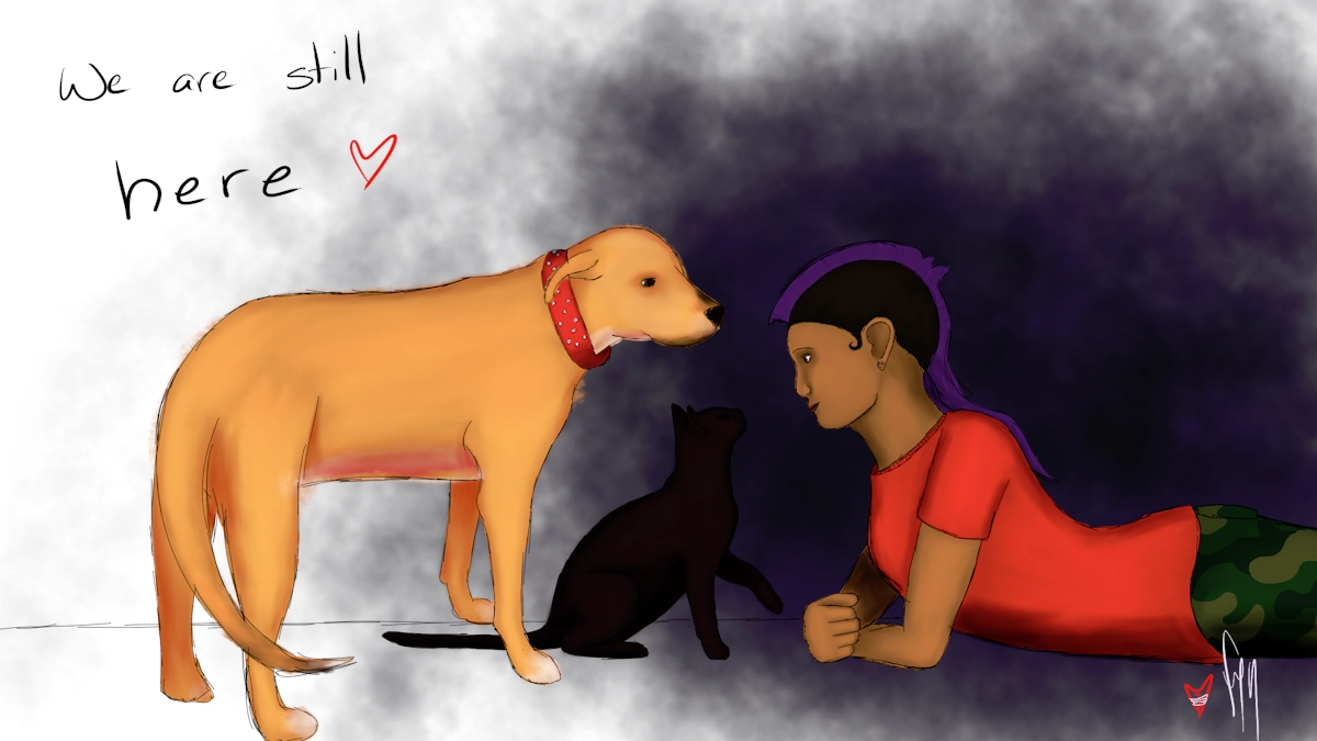 A lot of lovebombing from these two helped a lot. There are a few other non-humans in the house but Taliesin (the dog) and Darkness (the cat) are specifically mine.