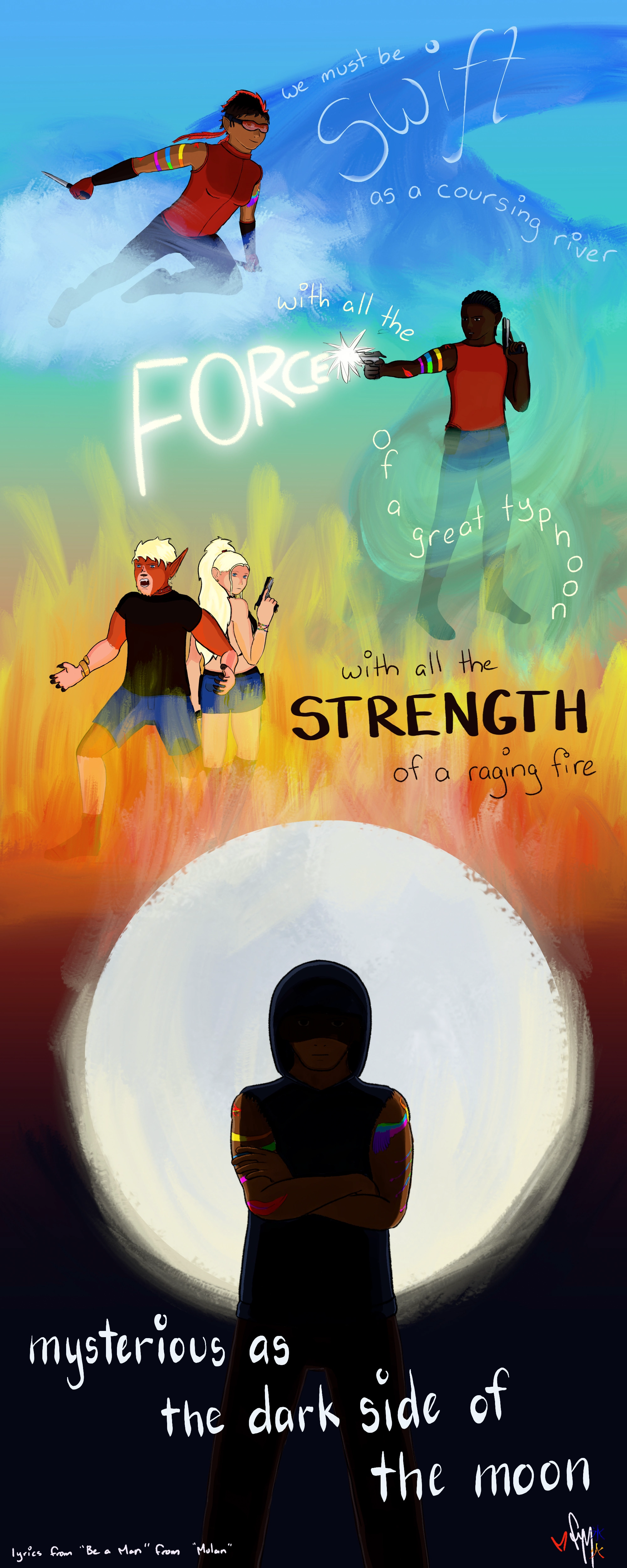 Then it was meant to be a brief interlude but I was trying to avoid cel shading because I hate doing it (I’m just straight up bad at it) but the other colouring styles weren’t working out (honestly it looked fine but not what I wanted) so I guess my brain decided that I needed to work on cel shading (and in some fairness to it I had kind of gone more anime/manga with this, Dak is the only one that would dual wield guns because his cybereyes can link up with his guns).