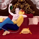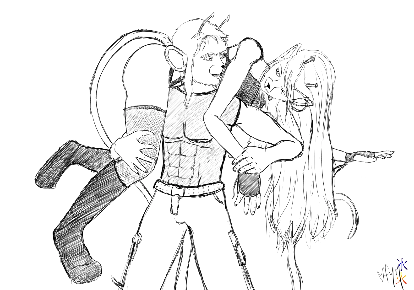 In response to a comment Artaith left on the Rescue sketch on deviantART XD Sprat made the point that it’s entirely possible to “bridal carry” someone the same height as you but this was more fun and playful. And I have no idea what the relationship between Stoker and enGage is, she may well cut out his heart for this in the next panel, I decided it was amusing for all concerned. I also don’t know if enGage actually wears fishnet stockings or tall boots, the reference I used was a half body.