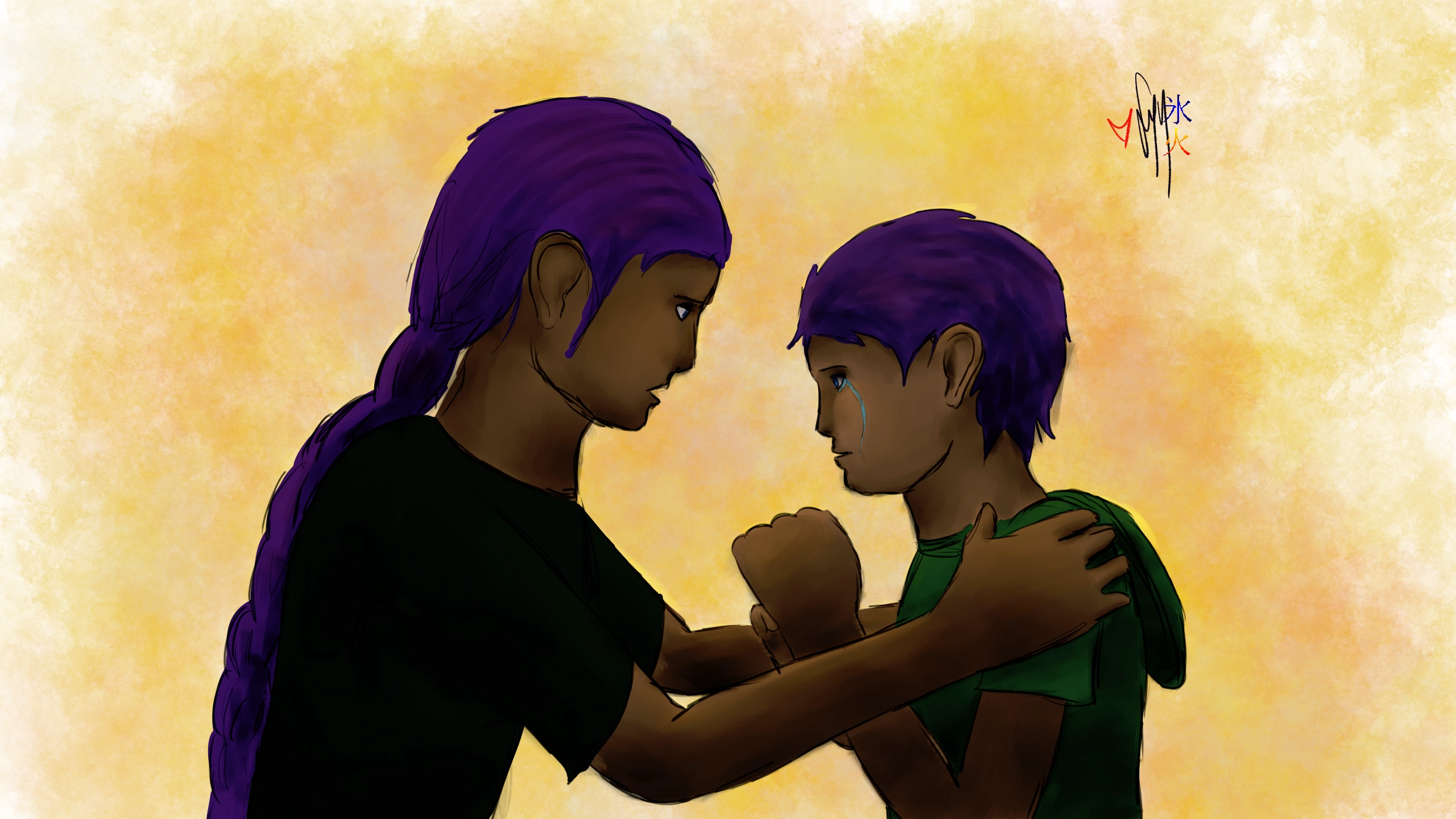 Sorry about quick messy sketchy, hope the accompanying ficlet kinda makes up for it? XD I really just needed to draw something, and while mindlessly flicking through an outline for a pokemon fan comic series I wrote a couple of years ago, this scene jumped out. Possibly because I’m feeling majorly stressed at the moment myself. 12yo is trying out high school this year (she just wants to see what it’s like so I’ve put her in for a term, so far she’s having a blast) and the logistics of having two out and one in is destroying me. I may have to cut my steem time more to make up for the 5 hours of art time I’ve lost with stupid school pickup :S