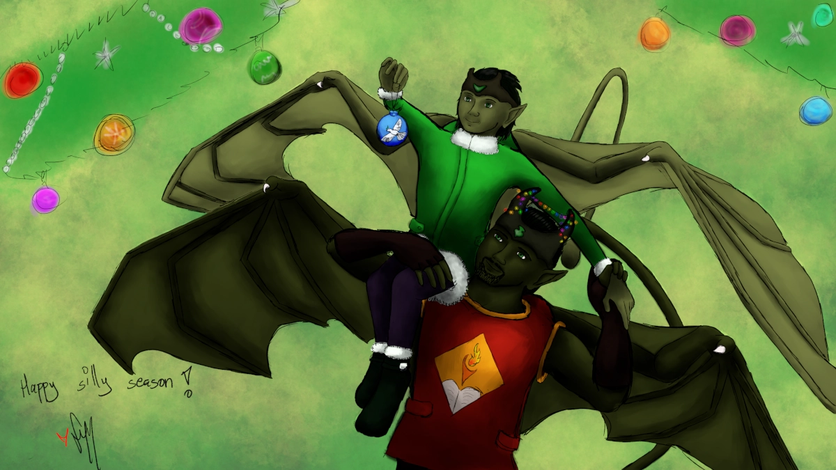 The boxes were opened, Amar’ha handed Mya’le her bauble to hang. As he had done every year for the last six years, Shu’karr swung her up onto his shoulders so she could hang it on one of the higher garlands not too far away from Tsa’run’s, and briefly wondered how many more years he would have of being able to do this, before deciding to just enjoy the moments while they lasted.