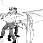 “You’re up late,” he commented, switching her into a carrying position as he scooped up his bag with his tail, transferring it to his free hand.