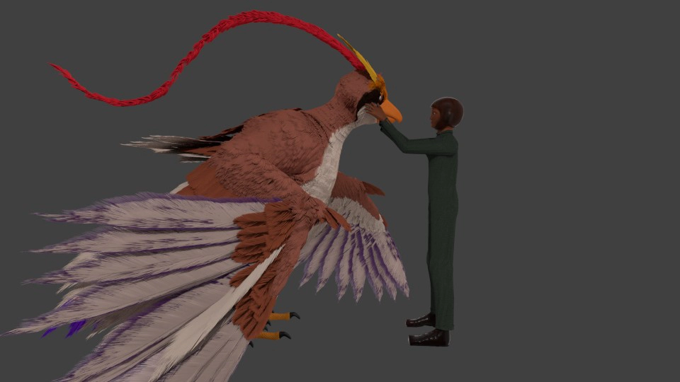 No floor as otherwise the wings would be clipping through it. This was mostly a test to make sure my feather settings would look all right with their current child count at decent settings. I originally tried for 1000 samples as that’s what most people seem to use in final renders but my iMac was struggling a bit with it (and got really, realy hot, don’t think 3d rendering was what people had in mind when they designed it) so I knocked a 0 off. Hoping to finish it soon just in case I do need to leave it rendering for a week for the final.