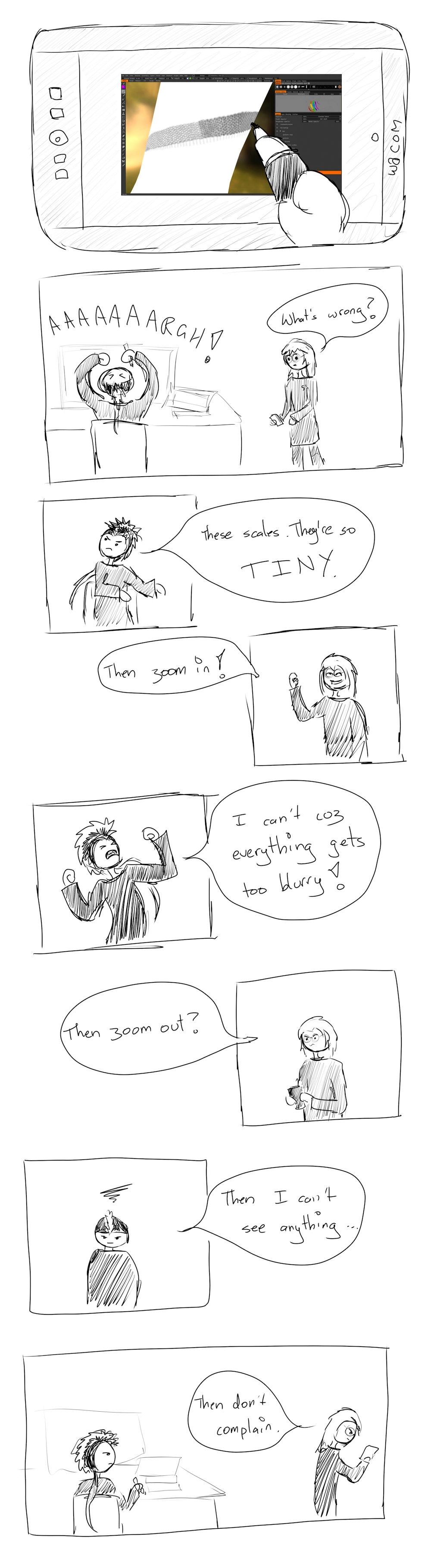 Basically I’m working with an insanely tiny brush because 3dC has very stubbornly stuck to its own scale (does the SceneScale thing only apply to the sculpt room or is it just there to give us the delusion that we can change things?) which made fine detail work like this impossible (which as everyone knows takes longer).