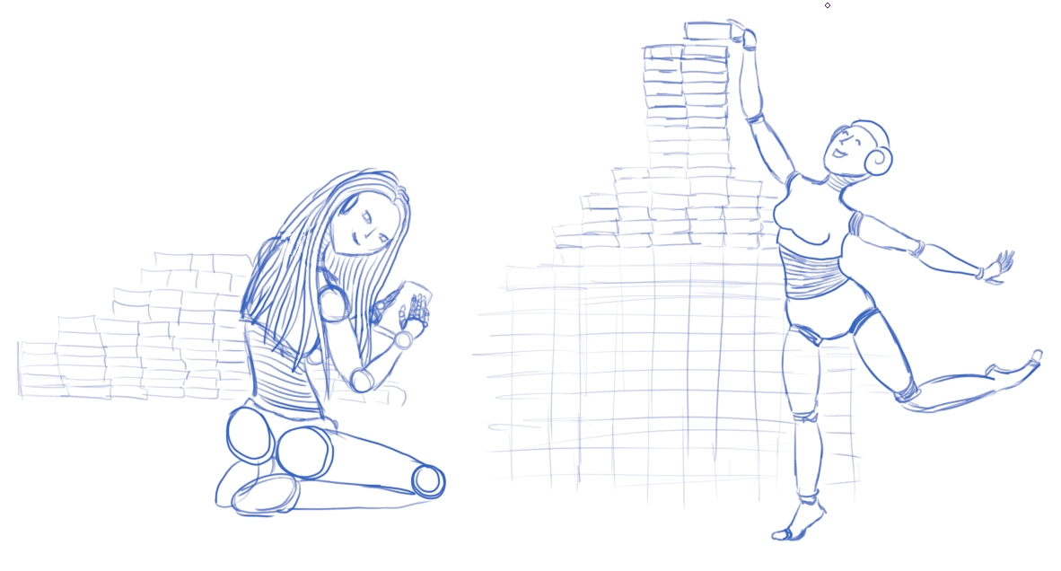 Superquick sketch ideas for @silvergoldbotty (who is a bot). The first two are different types of retro android, the third one is a more humanoid android that will have gold hair and silver skin if it’s sitting on a gold stack and vice versa if it’s a silver stack, and will be sprinkling symbols of other currencies of upvotes or something.