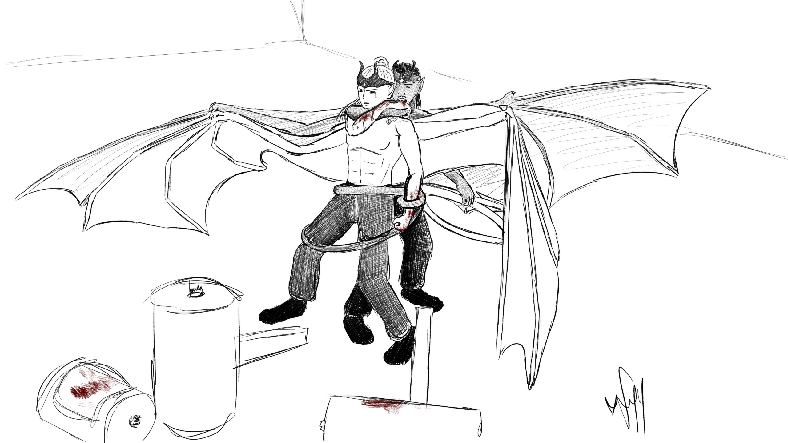 It’s been a week. Last night got to a point where I made the executive decision to draw even if it meant I didn’t make training this morning. So I banged this out (didn’t feel like colouring at the time) and started writing, finally got to a point where sleep would be a thing that was going to happen, crawled to bed, woke up late (surprise surprise) and finished writing.