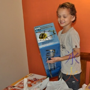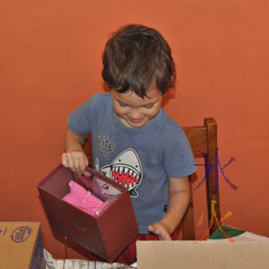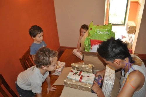 The kids were excited but waited very patiently while I brought out the boxes to the dining room table to divi up the presents.