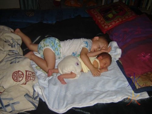 Actually it probably started with him being intrigued by me being pregnant with 4yo, but I don’t have photos of him kissing the bump. Either way, playing with toy guns and violent video games doesn’t seem to have made him an aggressive violent child incapable of nurturing and playing with dolls.