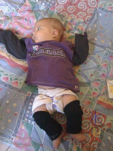 By the fourth month of Cub, he was on the way to becoming indoctrinated into the sports religion. JJ claims he has a choice, he can wear the jumper or be cold.