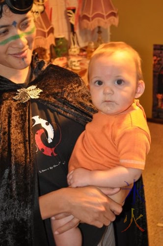 The eighth month of Cub saw him masquerading as a pumpkin in a bright orange outfit at a Halloween party.