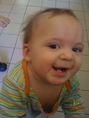 In the fourteenth month of Cub, he showed how much of an active little tot he was by one day coming to me after having bumped his head on something sharp and splitting it. The damage was not terrible and could be repaired with a bandaid and lots of love.
