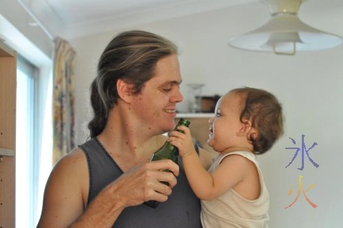 This seems to be a tradition. Cub did not really celebrate his first birthday with a bottle of beer, though he really, really wanted to. Daddy drinks it! Daddy says second set of teeth and they’ll talk about it, same thing he said to Cub’s siblings.
