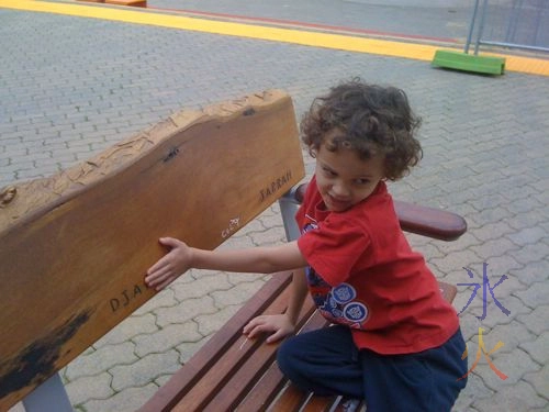 There was a community garden not too far away, or “urban orchard” as they are calling it. I didn’t actually notice it was veges and herbs and fruit trees in the first passing, just acknowledged there were many planter tanks with plants in them. Nice spot to play and chill. I needed to get money out of an ATM to feed my obviously malnourished and starving children who hadn’t had anything to eat for the entirety of the previous 5 minutes, so we went for a hike into Northbridge. It was a good thing we did as we found these benches on the way back with what wood they were made of carved into them, the scientific name, an Aboriginal word for it and the English word for it.