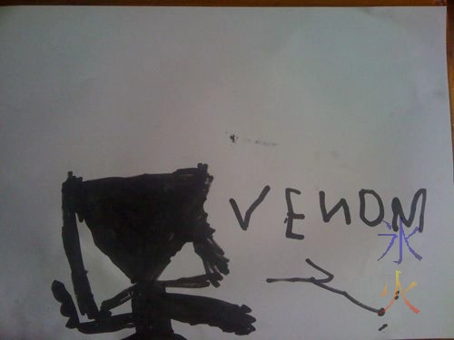 Last week, 6yo drew a picture of Venom from Spiderman with black whiteboard marker on paper, including sounding out the name and checking with JJ after writing it out.