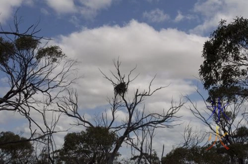 There is a house in those trees. It’s a bit of a dark splodge in the photo. On the other side of the tree to the right of the white thing.