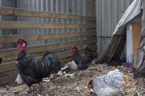 I think there’s tomatoes in there, possibly capsicum, pumpkin, cabbage and a couple of onions that got thrown in there because they sprouted. Not sure what else is in there. The tyres at the back (there are two of them, the other one is off-frame) have potatoes in them (assuming the chickens haven’t eaten them).
