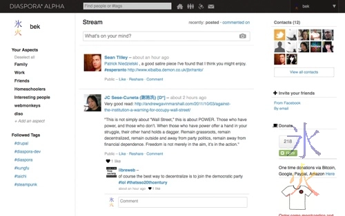 - G+: going to hack Drupal DiSo. For things usable now there’s Diaspora and Friendika