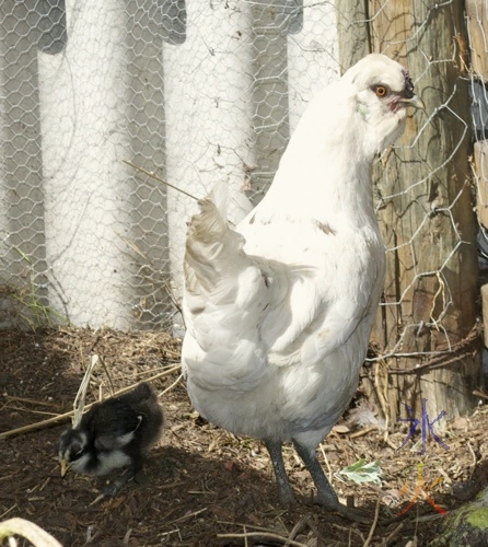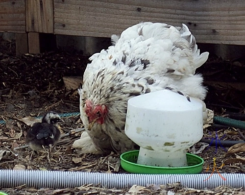 Henny Penny (Aracauna, aka Fricking Psycho) with her single chick