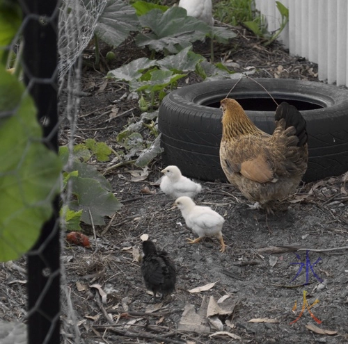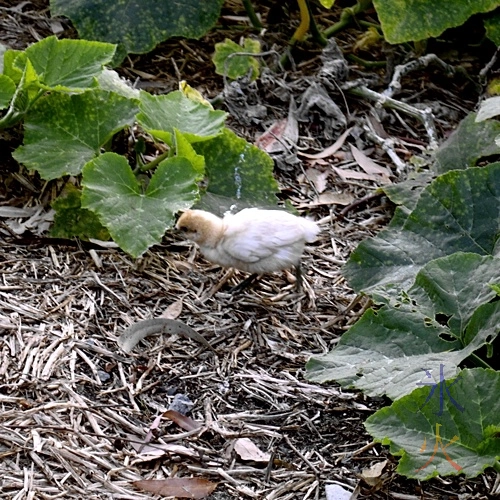 Daenerys’ 4th chick. All the chicks get into the vege patches regularly.