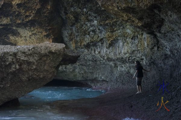 Exploring the very shallow cave at Greta Beach. Left the kids with the grandparents as it was quite rough. We both got wet and neither of us were geared for swimming