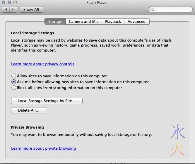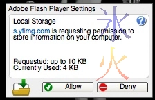 Next time you visit a site that wants to use the Flash player, you will be presented with this dialogue within the Flash player: