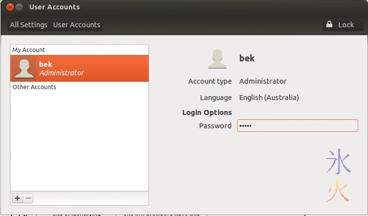 All the stuff there is clickable, click on the password box (can’t really see it on my vm, not sure if it’s always like that) and you’ll be taken to a screen where you can set the password. (note: if you came back to top from following my very slight modifications to the Ubuntu install, you would have already done this during install)