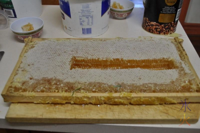 JJ took some honey out of our hive this morning and gave us a frame of honeycomb before ensconcing himself in the laundry to stuff the honey into pots. The boys loved the honeycomb. 6yo loves the honey but isn’t big on the wax. Then they sugar rushed. Inside because the bees were still irritated about being raided. Loads of fun for everyone. I swear I washed 3yo’s sticky honey paws more times this morning than I have the entire previous week.