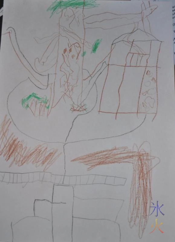 After telling me he wasn’t that interested in drawing anymore he did come up with this “map” for a game they were playing outside.