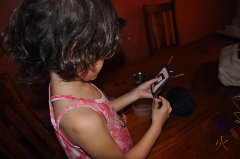 On Friday we made gods eyes out of sticks and utilising all two different coloured wool balls we had. The kids hung them over their beds to scare away nightmares.