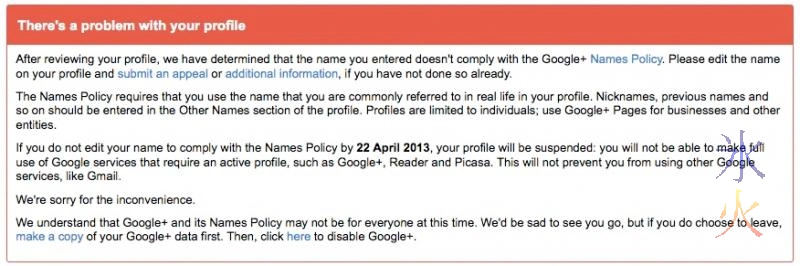 I don’t like using my entire name on the internet. I’ve even changed my oh-so-professional LinkedIn profile which did have most of my name on it at one stage. I think your “real name” policy is stupid.