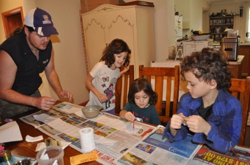 We had a storm that knocked out all landline communications in my area, as well as at least part of the grid the airport is on. We just had no easy internet (no phones, only use mobile, I had 3G if I really needed to look something up). The building that JJ’s office was in had no power, so the lot of them hung around for a few hours, and when the power didn’t seem to be in any danger of coming back on, they packed it in and he came home. He and the kids chose some stuff to plant, made glue out of flour and water and then used that and toilet paper to make seed paper.