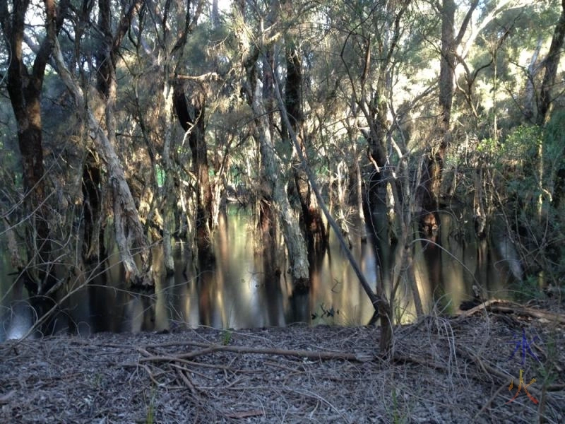 After the party, 4yo and I took Tali for a walk. I decided to go around the loop boardwalk at the bottom fo Pioneer Park as I hadn’t been through there for a while. With all the rain we’ve had there was actually a swamp.