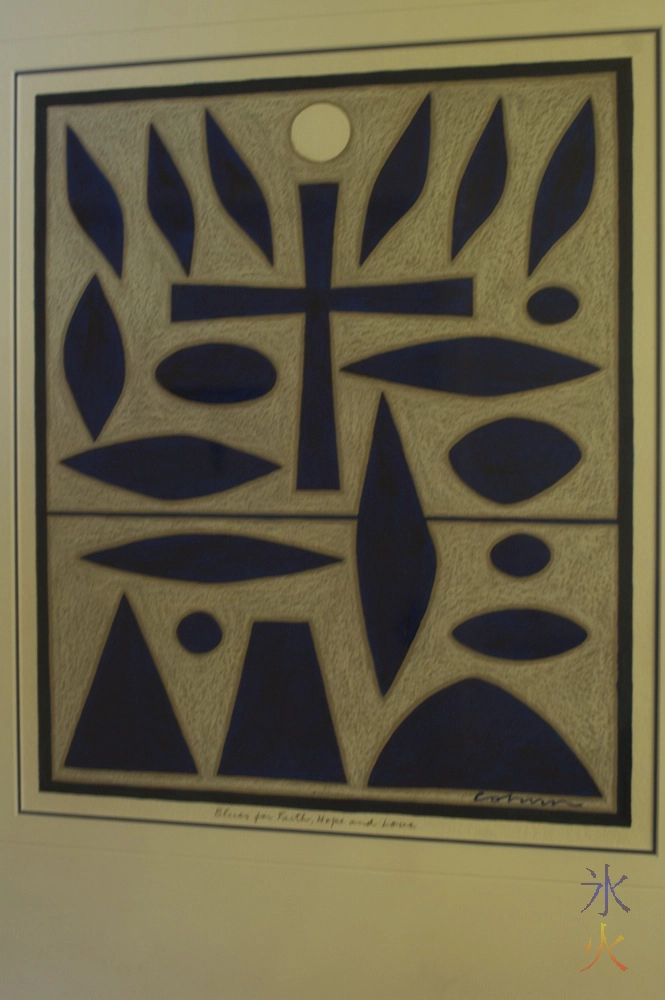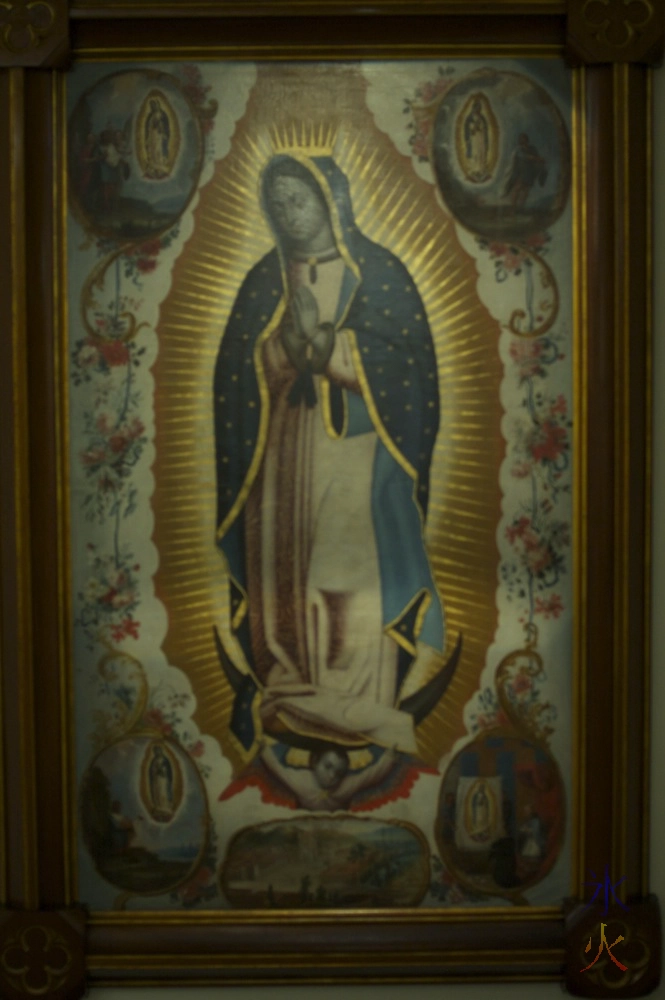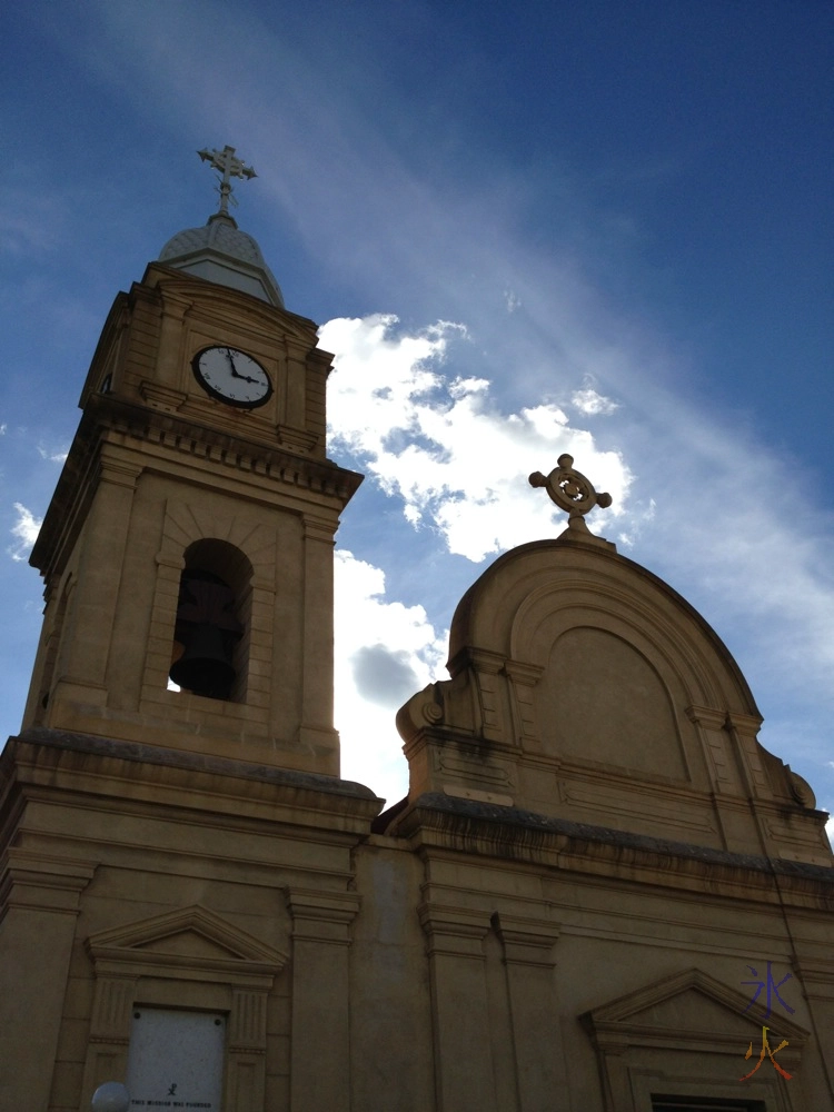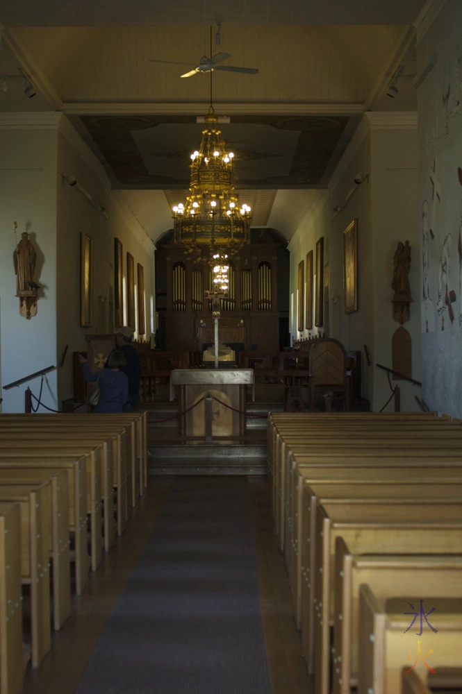 Another ghost story is that of a blue nun-looking ghost that apparently flies around the bell tower as it chimes midnight. I walked into the church, remembered having to go in there for mass when I was up for art camp, said as much to the kids and then turned around and walked out, taking a photo of the stained glass above the door from the inside before making my escape. It didn’t turn out too well and neither did the shot JJ tried to take of the painting (called “The Mother of Good Counsel”) inside the church that turned back a bushfire (the story goes that a bushfire was threatening the town so one of the abbotts grabbed the painting from inside the church, ran back out and brandished the painting at the bushfire while praying to be saved, the wind changed direction and blew the fire away from the town and the fire died out soon after).