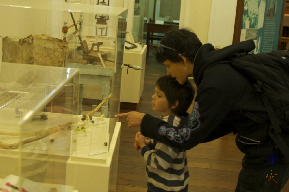 Kids and mother-in-law checking out some of the items owned by the abbotts that started the monastery at New Norcia