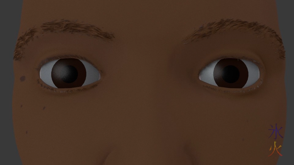 Good enough for my purposes. I don’t think I will ever do an ECU of my face at any time other than checking eyebrow and eyelash renders and I also need to find out why Blender seems to be outputting jpgs so dark. Also need to see how everything (shaders and hair) cope under different lighting conditions as everything is pretty studio at the moment.
