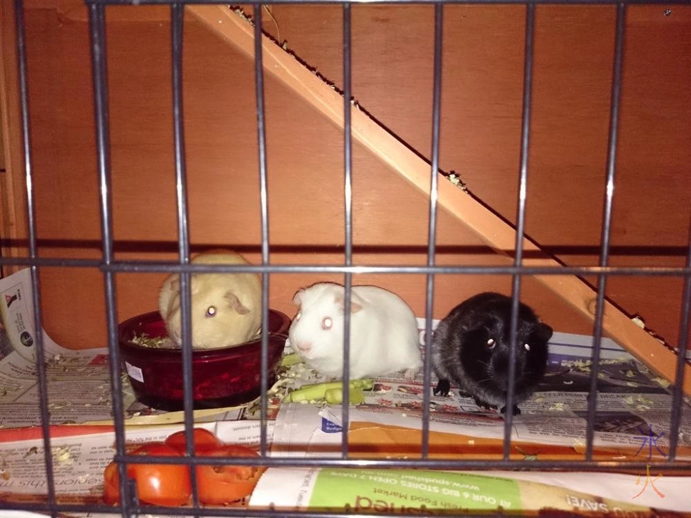 This house is more Menagerie than The Menagerie was. Newest additions from left to right: Popcorn, Lucius and Nightshade (which may actually be Knight Shade as I suspect it was named after a Skylander), belonging to 8yo, 10yo and 6yo respectively. We’ve had them for three days so far and they’re settling in slowly. Cats completely do not care about them. Tali has sniffed them both in the cage and in my hand and been great. Angus just wants to bite them. Which then of course stirs Tali up and he wants to play too! Working on that -_-