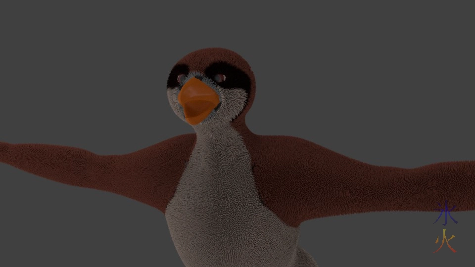 Executive decision made, I will finish this thing even if I don’t make the deadline (though I won’t work on it quite as strenuously if I don’t make the deadline). If I can get rigging done tomorrow and 3d-fyn done within a few days then I think I will be okay. I’m not quite sure what’s going on with the down especially on the front as in one of the million times I had to do the recombing the particle edit turned the down almost black (a lot more than the above screenie) so I can’t really see what I’m doing when combing.