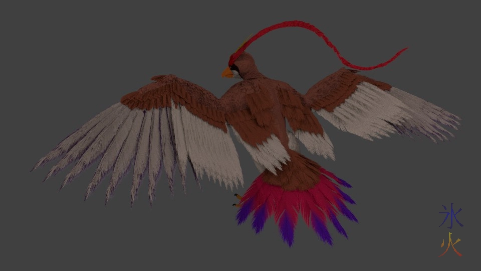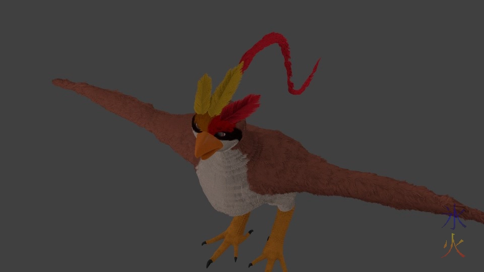 posted on: Tuesday, 6 October 2015 @ 8:38am inStarting work on my entry for The Great Pokemon Sky Race Collaboration. I need to do another version of 3d-fyn (because the last one blew up while I was fiddling with something, probably the rig, and then I reworked Base’s rig anyway) as well. 3d-fyn will be riding Flashwing (pidgeot from my Pokemon Yellow game) in mega-evolution (I think mega evolutions are kinda dumb really, however mega-pidgeot form is theoretically big enough to carry 3d-fyn otherwise we’d need an enormous pidgeot).