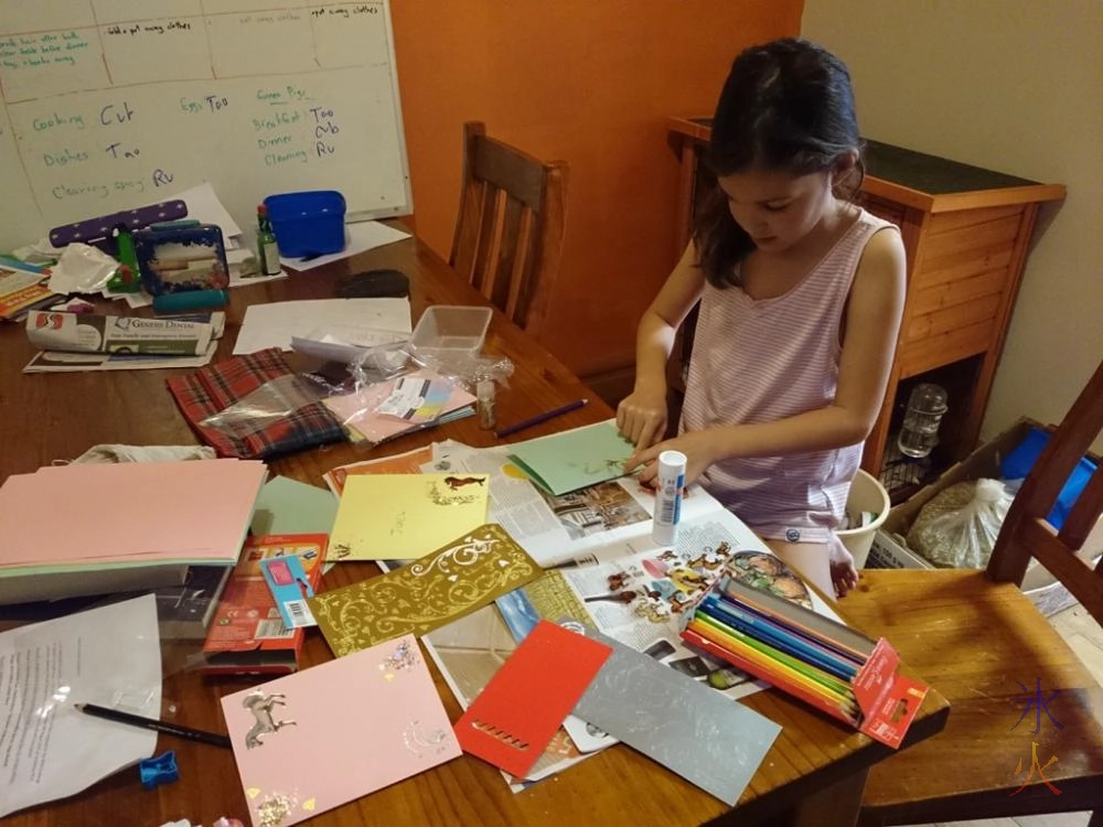 After a bit of scurrying around trying to find a park with a castle (the only ones I know of are the Lotterywest Playground in King’s Park and Fancote Park in Kelmscott. The former was a bit more of a hike than I wanted to do (and we have done it before for 8yo’s 7th birthday) and the latter we’d been told the castle often had broken glass or needles in there, and even though it would probably just take an adult sweeping through beforehand to make sure everything was safe we decided against it. Fortuitously 10yo, 8yo and I had started playing Ingress (hurray for being able to practice map reading skills on the fly) and in our wanders looking for portals, we eventually decided on a pretty little local park which makes up for its lack of play equipment (something which has been concerning the big kids less and less) with a lot of grass and trees. Now all she needs to do is the text for the inside and then we send them out.
