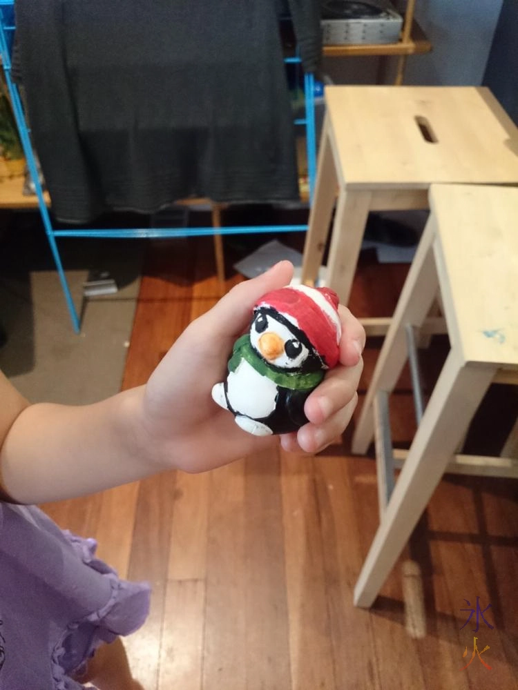 and 8yo painting Christmas themed plaster models with the resident 12yo.