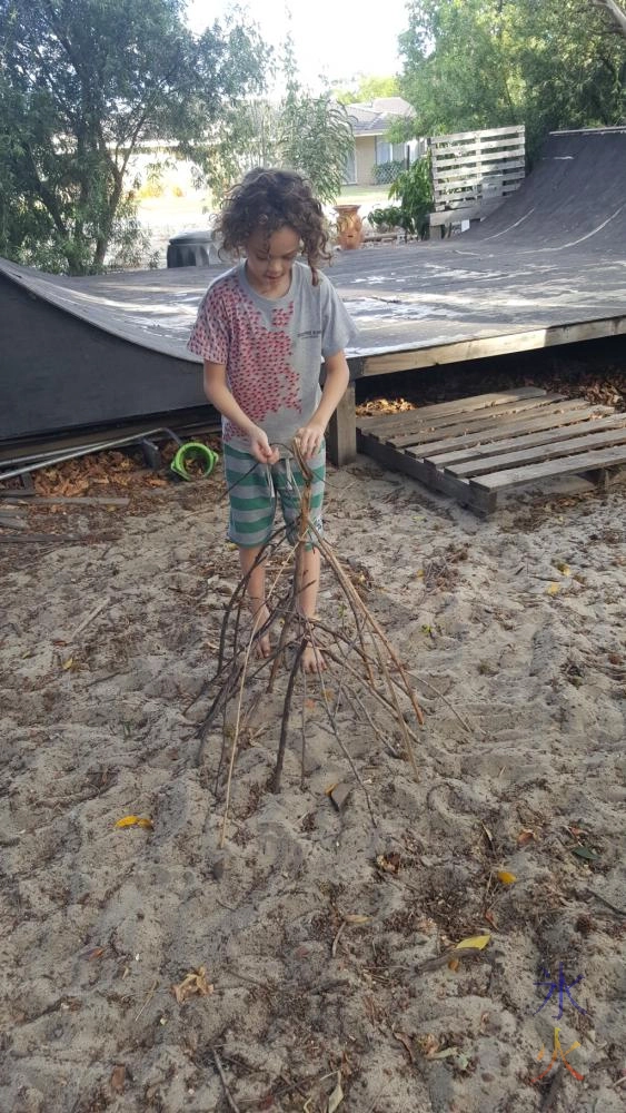 11yo did some structural art, making a “campfire” in the yard.
