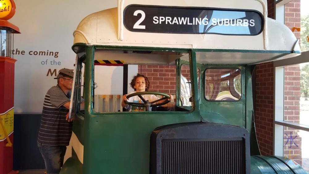 JJ’s parents and the rest of us went to the transport museum. Again it ws great to have the parents in law with us as they were able to put quite a number of things in context for the boys, such as mother in law telling them how her mother (the kids “big nanna”) used to go to school on a cart, and their own memories of seeing some of the older style vehicles, school buses and hay wagons in use at various points in time. Father in law also explained the oldschool petrol pump to 7yo who couldn’t really remember the one from our Wilkinson Homestead excursion from a few years back.