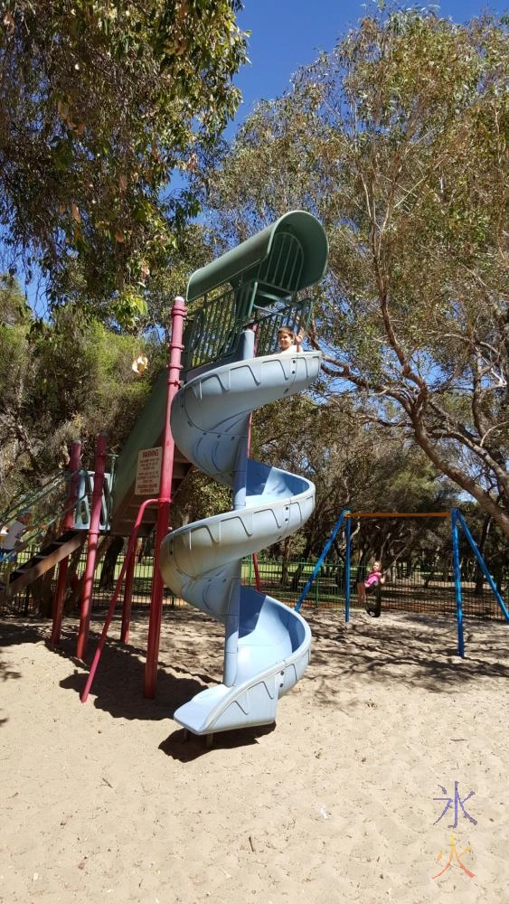 I organised to meet up with JJ’s family (parents, sister and her family) at Whiteman Park. We met up at the pretty large and cool playground that had a pretty tall slide tucked into one corner: