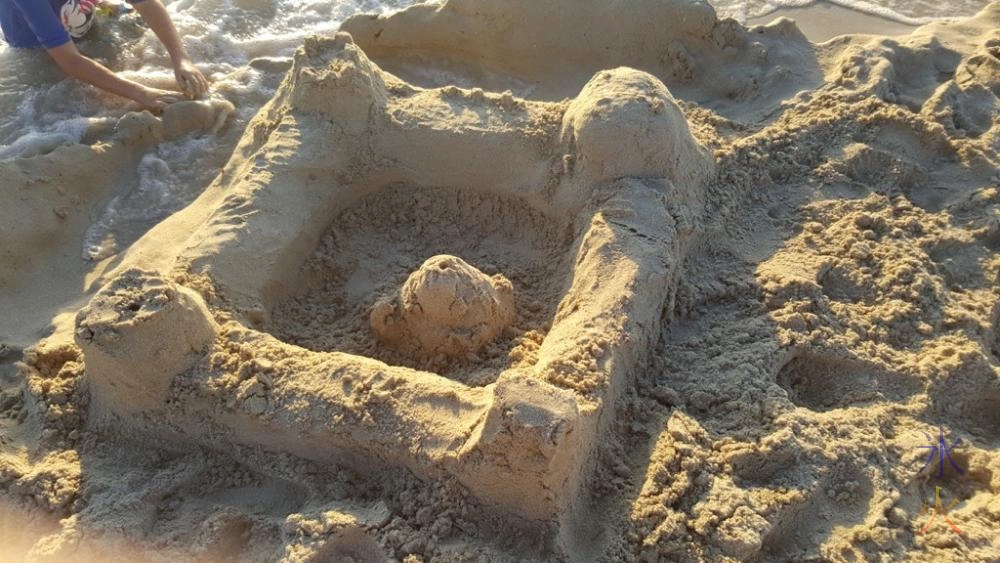 On one of the trips to the beach up near a friend’s place, we all collaboratively built a decent sized sand castle complete with mage tower and surrounding moat and retaining walls. When the tide came in we battled with the retaining walls for a little while before the sea inevitably won.
