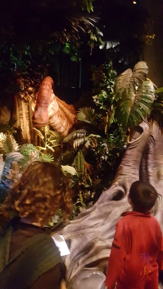 The first area we checked out was a raifnorest room we had seen when we walked in and gotten the kids food (because kids are in a permanent state of hunger) before our exhibition slot started. It had a little cave thing where we could walk under the stream they had and see what lived in these types of streams, and a log with viewing thingies so the life inside could be examined.