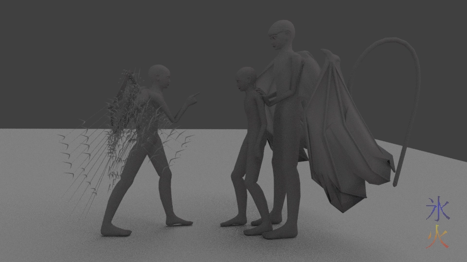 Please excuse Avi’s scraggly feathers, I pulled the above frame out of one of the timing test anims and turned the particles right down so it would render faster.