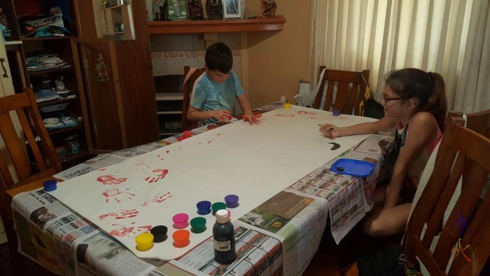 One of the things 10yo had wanted was a banner so she and 8yo worked on making one up: