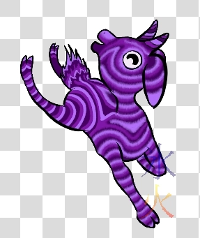 Haven’t done the tail or the other two yet. Now I need to find out if this is okay or if I should do a simpler goat pattern with a much more mildly psychedelic aura :S The purples also managed to look violently different across both my monitors (my primary screen has it more towards the red and the Cintiq has it more towards the blue, the actual colour I picked was the purple part of the colour wheel smack bang in between both).