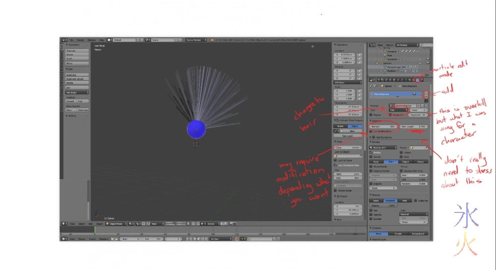 Blender notes: curve guides for particle hair and bonus hair colour without making separate emitter geometry